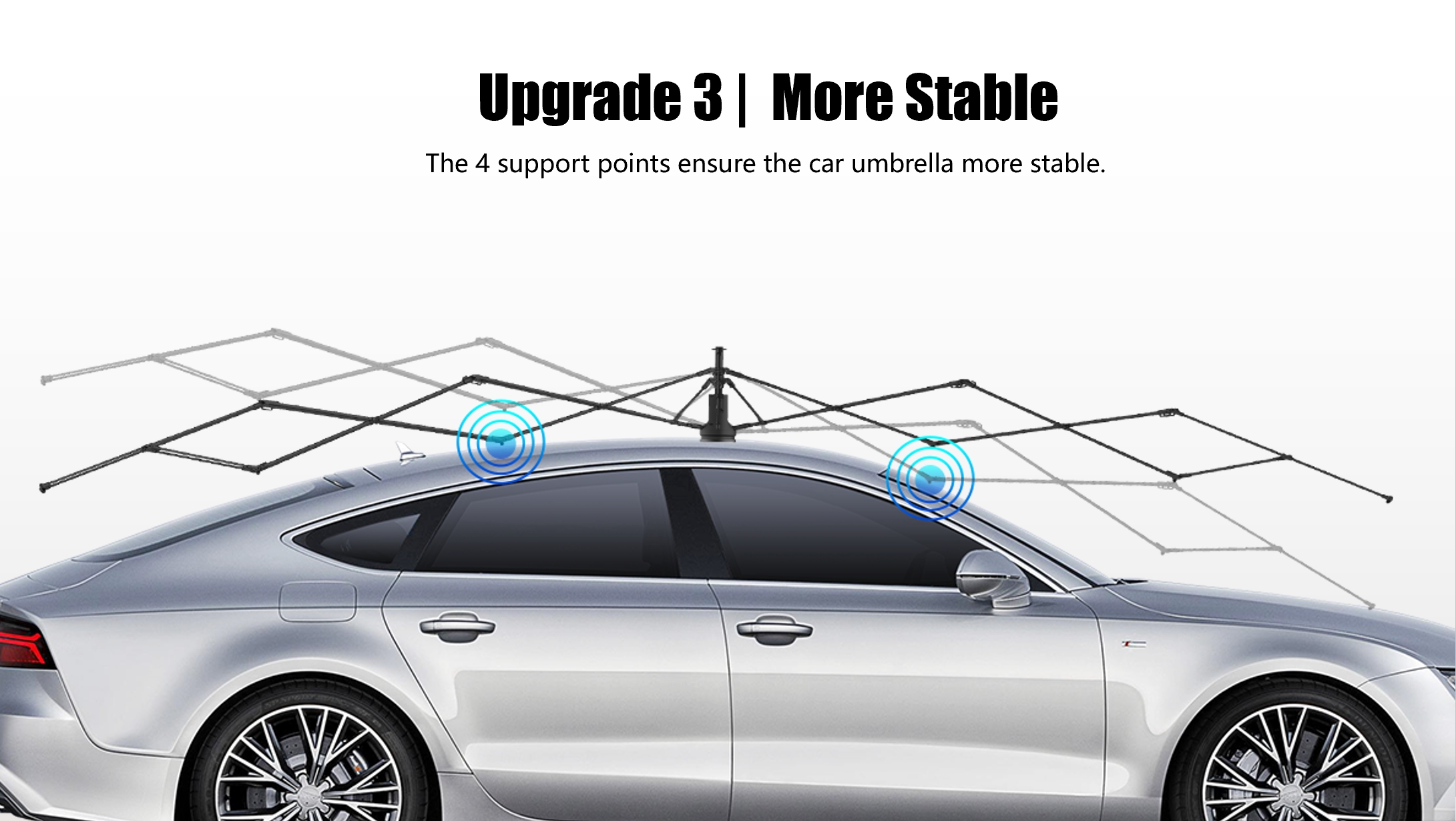 In terms of application scenarios, it's a helpful tool for daily commutes; remotely lowering the sunshade before getting into the car allows for pre-heating and cooling of the sun-exposed interior. For family trips, it provides shade for sleeping family members in the back seat, creating a comfortable and quiet resting environment. For outdoor enthusiasts, the tripod design allows it to instantly transform into a standalone sunshade for camping and fishing trips, offering both practicality and convenience.