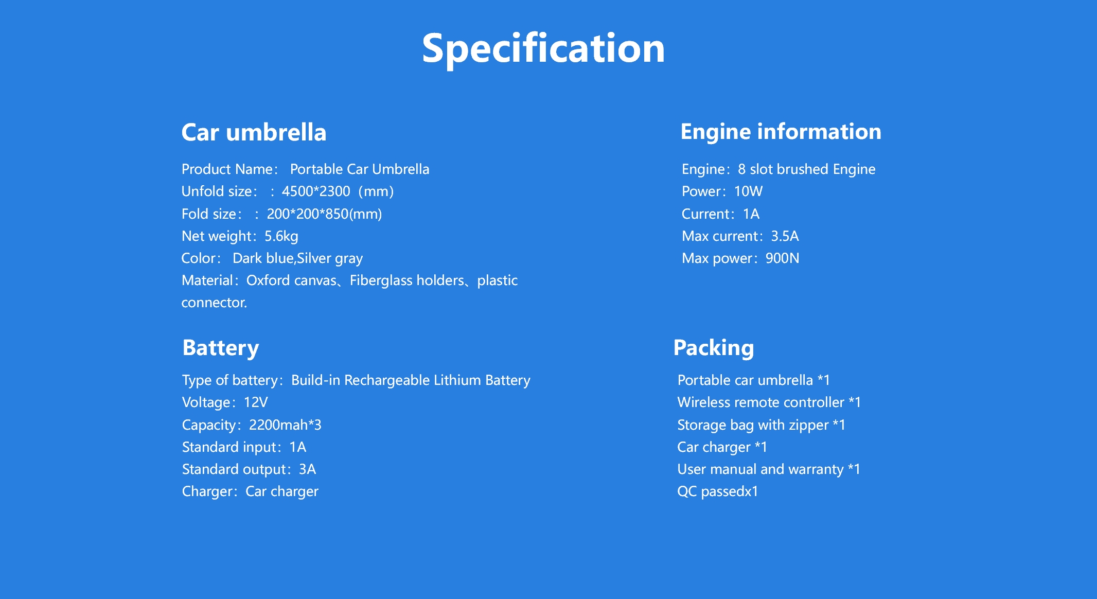 | Product Name | Automatic Portable Car unbrella | ||